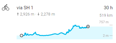 | Cycling profile from Kaikoura to Mount Cook Village |